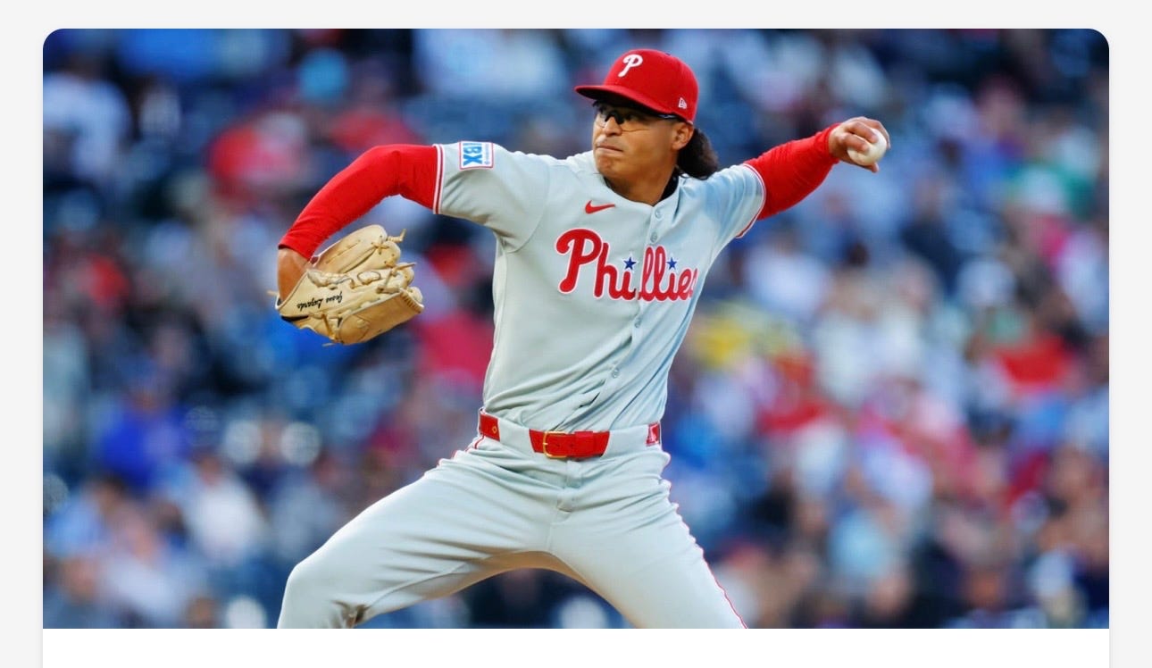 El zurdo peruano-venezolano continúa su dominio en la lomita. El 20 de mayo, ponchó a 10 bateadores en 6.0 entradas permitiendo solo una carrera en la victoria 7-4 de los Filis sobre los Rockies. Mejoró su marca a 5-0 con una efectividad de 1.95.